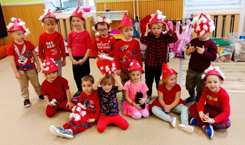 Třída I. stupně (meruňková) – zimní výzdoba, pohodlný čtecí koutek a úložné skříně.