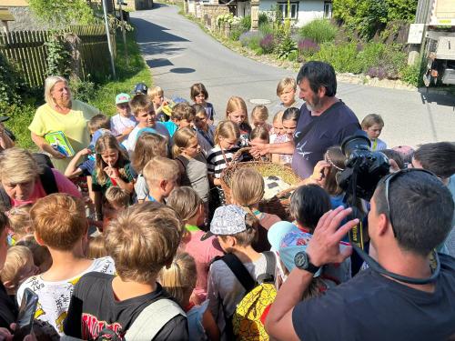 Jídelna – veselá stěna se „Zelenáčem a kukuřicemi“ motivuje ke zdravému obědu.